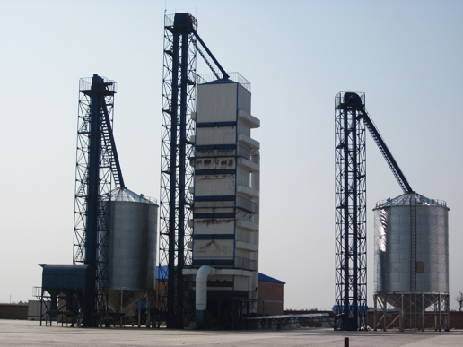粮食烘干塔主要由回转体、扬料板,传动装置,支撑装置及密封圈等部件组成。物料从较高一端加入,载热体由低端进入,与物料成逆流接触,也有载热体和物料一起并流进入塔体的。随着圆塔的转动物料受重力作用运行到较底的一端。湿物料在塔体内向前移动过程中,直接或间接得到了载热体的给热,使湿物料得以干燥,然后在出料端经皮带机或螺旋输送机送出。